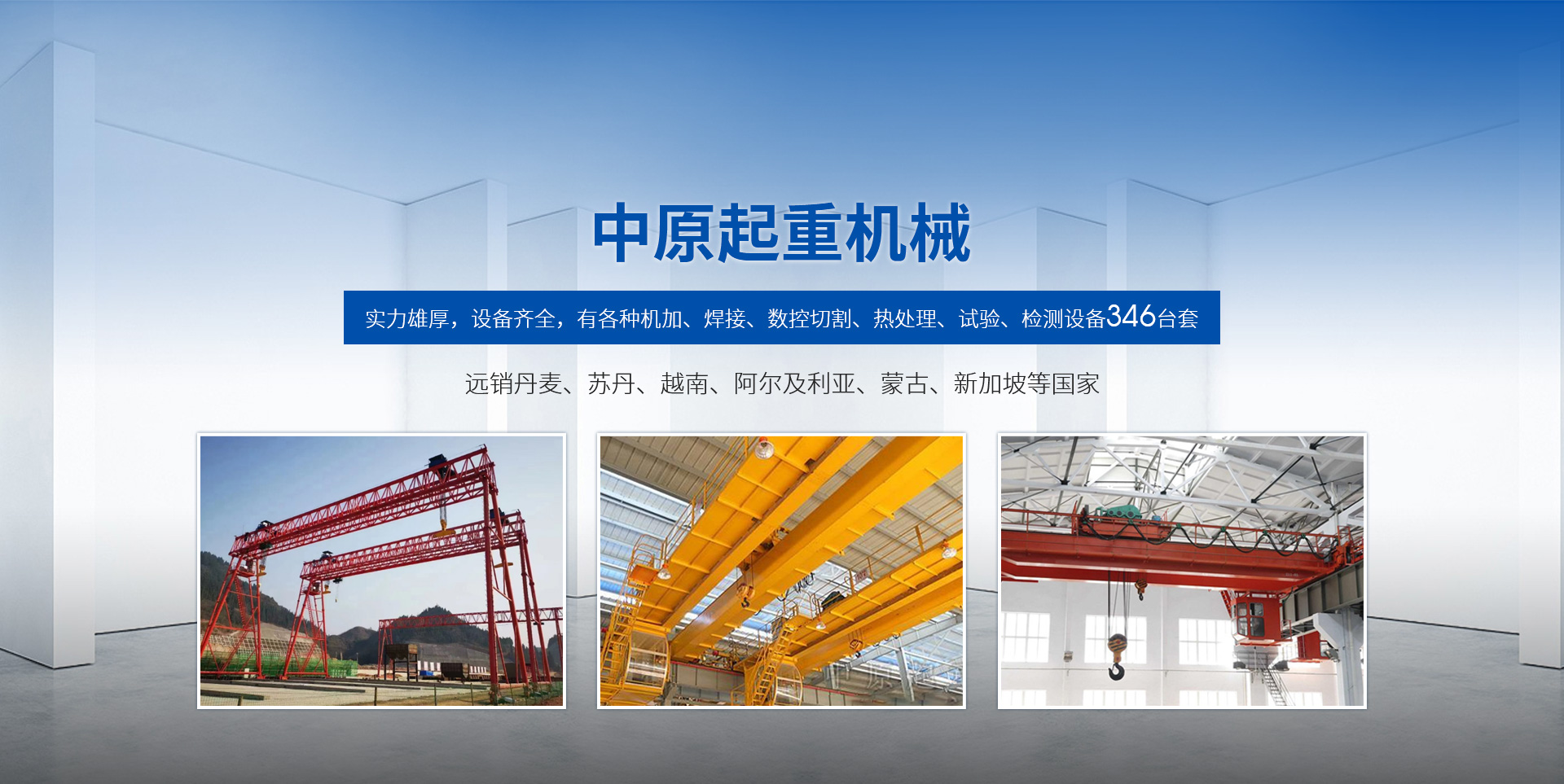 新鄉(xiāng)市中原起重機械有限公司成立于2000年,地處中原,輻射全國28個省市自治區(qū),設外埠經(jīng)銷處、辦事處268個。產(chǎn)品行銷工礦、建材、化工、冶金、電力、交通、鐵路、油田、港口等各個行業(yè)。遠銷丹麥、蘇丹、越南、阿爾及利亞、蒙古、新加坡等國家。  公司實力雄厚,設備齊全,有各種機加、焊接、數(shù)控切割、熱處理、試驗、檢測設備7臺;有機加工、熱處理、單、雙梁橋門機生產(chǎn)、檢測、安裝等9個車間,研究中心、運輸公司、安裝維修服務公司等機構,?  主要產(chǎn)品有:LD型1~20噸電動單梁起重機系列產(chǎn)品;5~600噸通用橋式、門式、冶金、上旋轉下旋轉電磁吊、絕緣、抓斗、防爆起重機系列產(chǎn)品;LH3~100噸葫蘆雙梁系列產(chǎn)品;MH5~32噸葫蘆門式系列產(chǎn)品;0.5~40噸CD1、MD1鋼絲繩電葫蘆系列產(chǎn)品;HS1型0.5~20噸手動葫蘆系列產(chǎn)品;0.5~10噸環(huán)鏈電動葫蘆系列;0.5~40噸彎道電動葫蘆系列產(chǎn)品;裝卸橋、造船門機、架橋機、鑄造吊和水電大噸位起重機系列產(chǎn)品。  公司建立了強有力的質量保證體系和生產(chǎn)過程的質量控制系統(tǒng),嚴格執(zhí)行國家設計、生產(chǎn)標準,有嚴格的生產(chǎn)工藝過程和標準,嚴格的檢驗、檢測標準和手段。